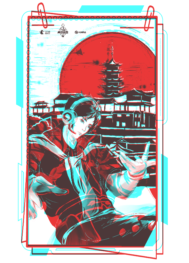 高校TCA团队科技感红蓝滤色涂鸦视频—新旧观赛对比,线上比赛让美好不再遗憾